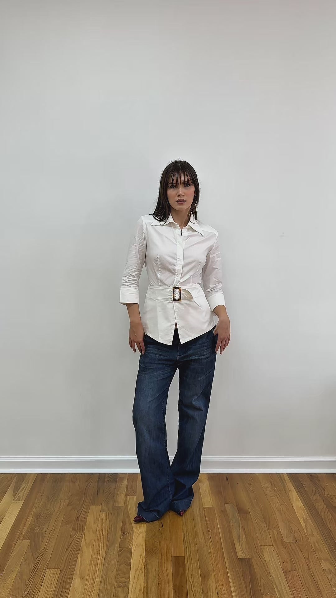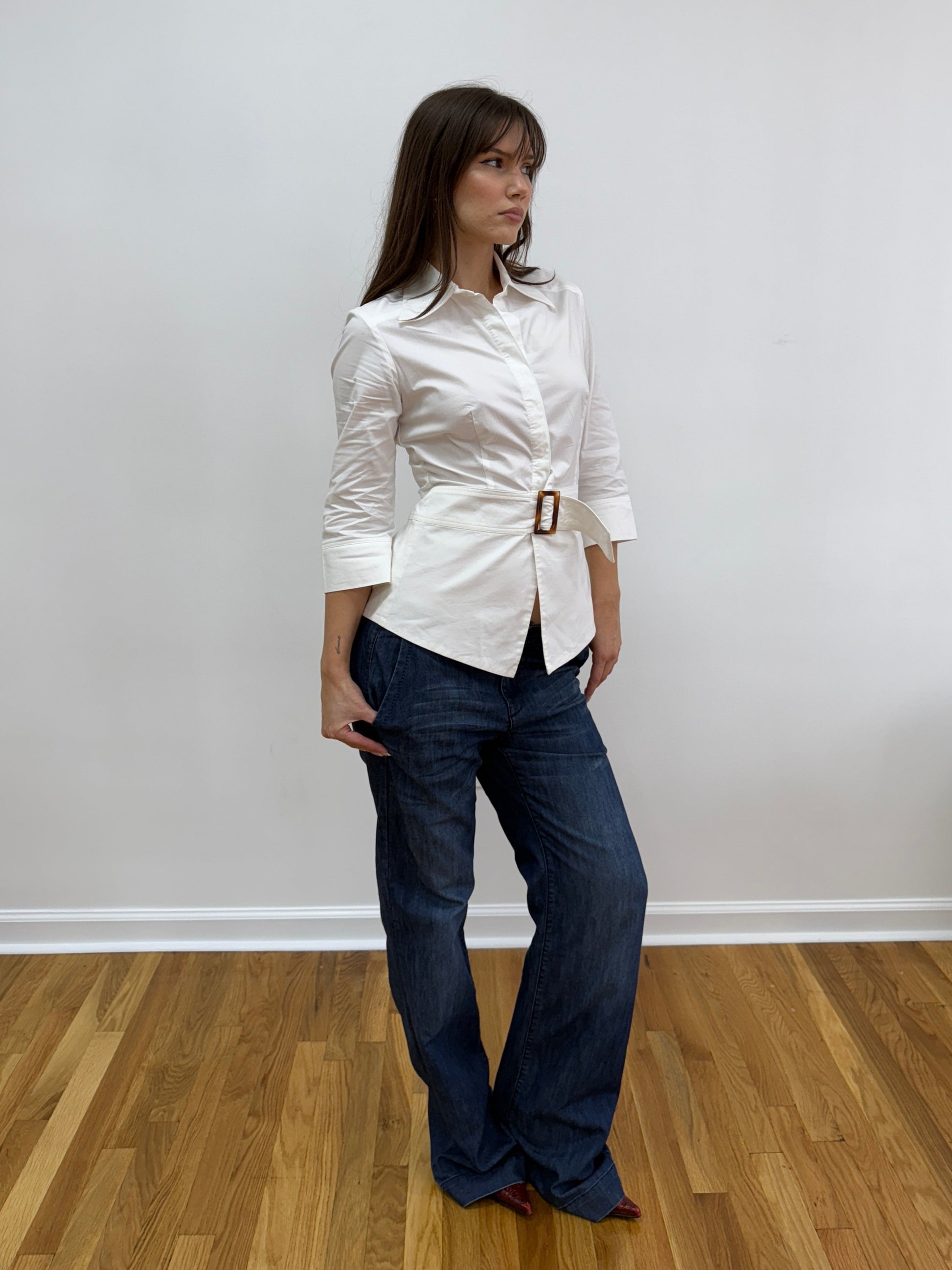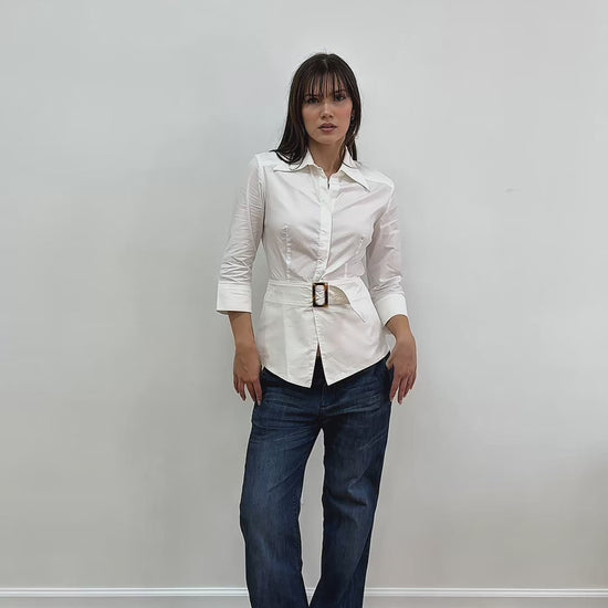 Blouse w/ Front Belt & Ladder Cut Out Back