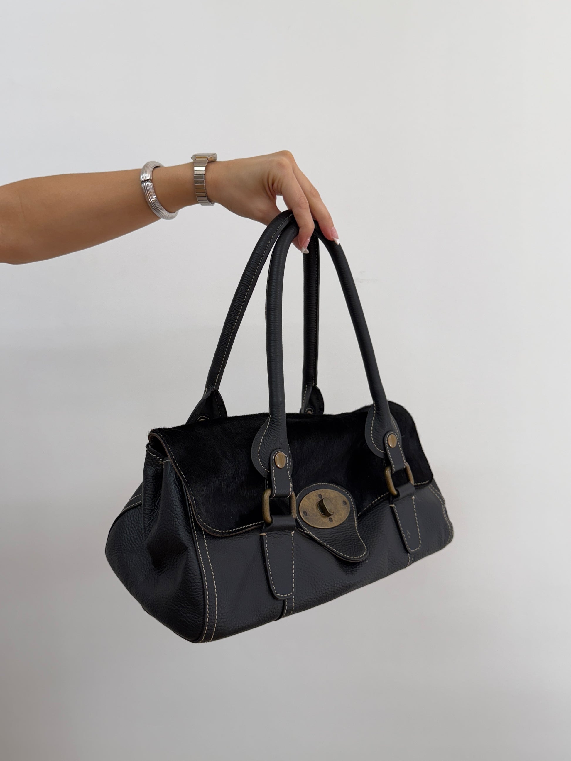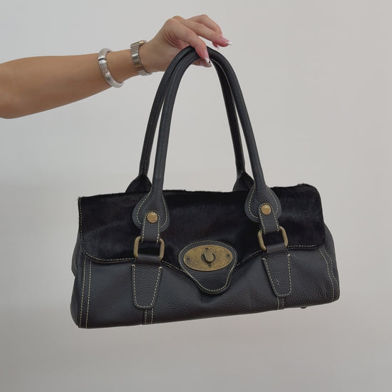 Leather Shoulder Bag w/ Cowhide Front Flap