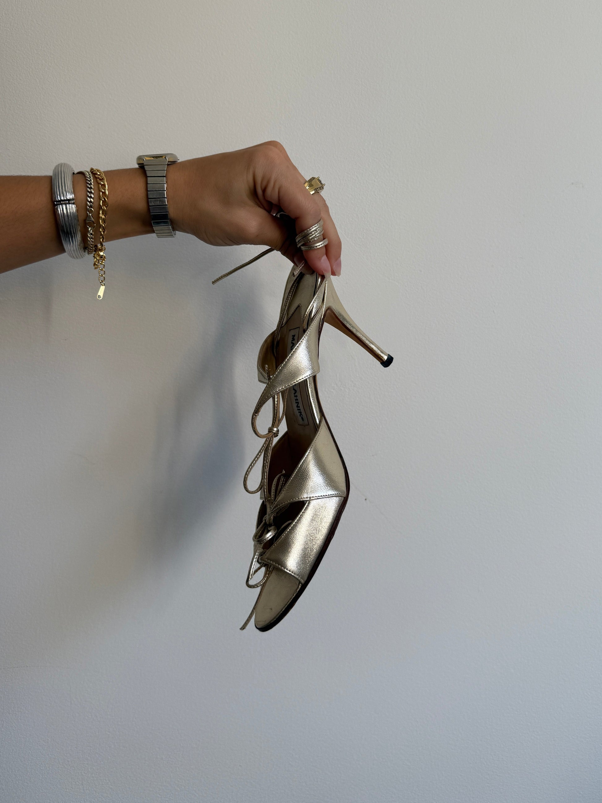 Manolo Blahnik Gold Leather Strappy Heels IT 37