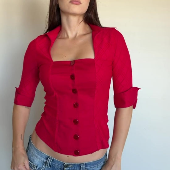 Red Square Neck Top