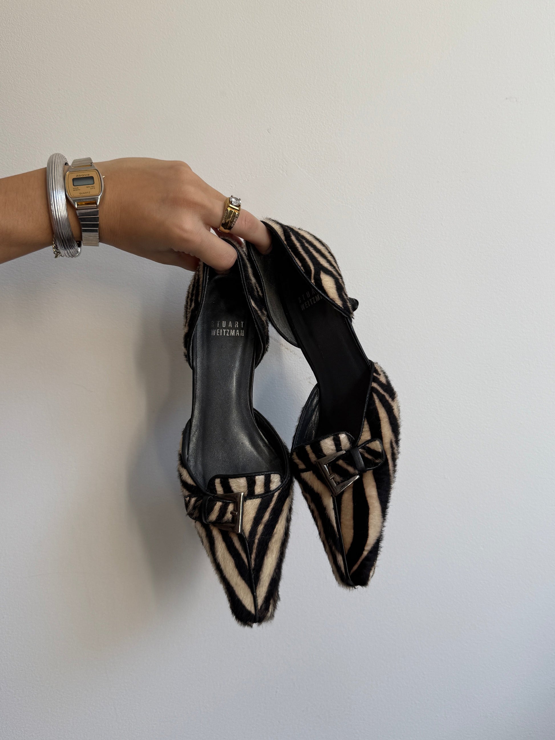 Stuart Weitzman Zebra Pony Hair Kitten Heel 5.5/6